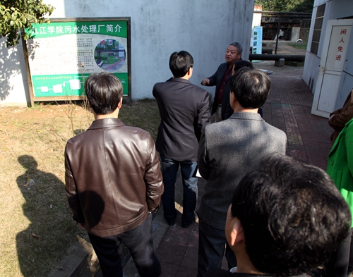 在艺术学院新区综合大楼一楼大厅,卢福财一行仔细听取我校后勤管理处关于节能工作的汇报。随后,到现场考察了我校太阳能路灯改造项目及污水处理厂。省考评组对我校在节能管理方面取得的成绩给予了充分肯定,并对我校使用的节能新技术和新设备给予称赞。