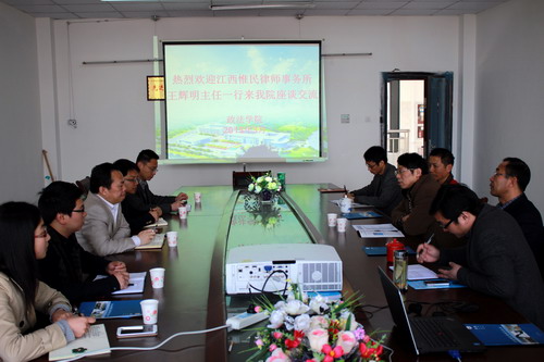 随后,院长助理曹钟安等与王辉明主任一行就政法学院与江西惟民律师事务所如何构建卓越法律人才协同培养机制进行了深入交流,并达成了基本共识。双方一致同意:进一步深入开展院所合作,构建“卓越法律人才”协同培养的新机制;联合打造法学专业优质实践教学团队,提高培养应用型法律人才的师资力量;搭建院所密切沟通与合作的平台,设立惟民律师事务所学院工作室;建立“以案合作”、“实例教学”与“体验式学习”的模式,让师生在办案实务之中实现法律理论与实践的高度融合。